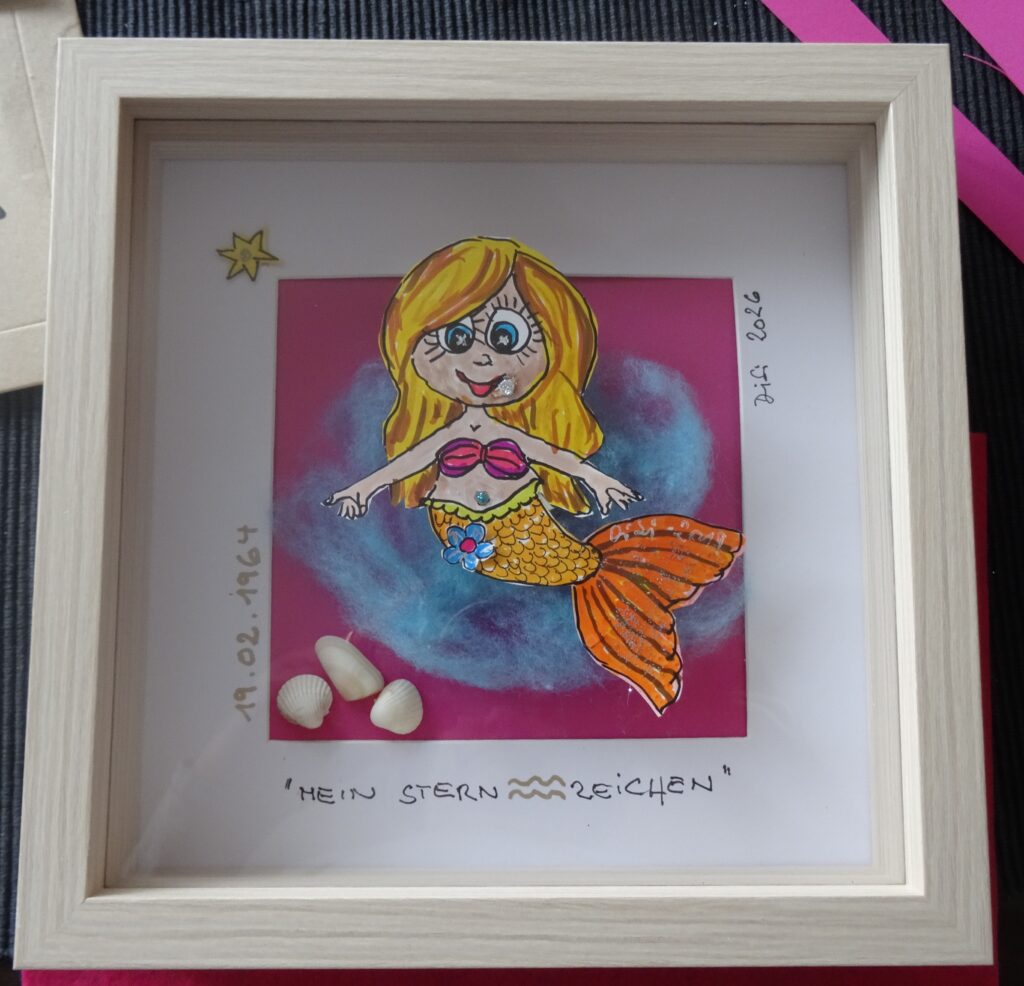 „MeinSternZeichen“_Unikat _ handsigniert, schwarzer Rahmen , 25x25cm, 2019